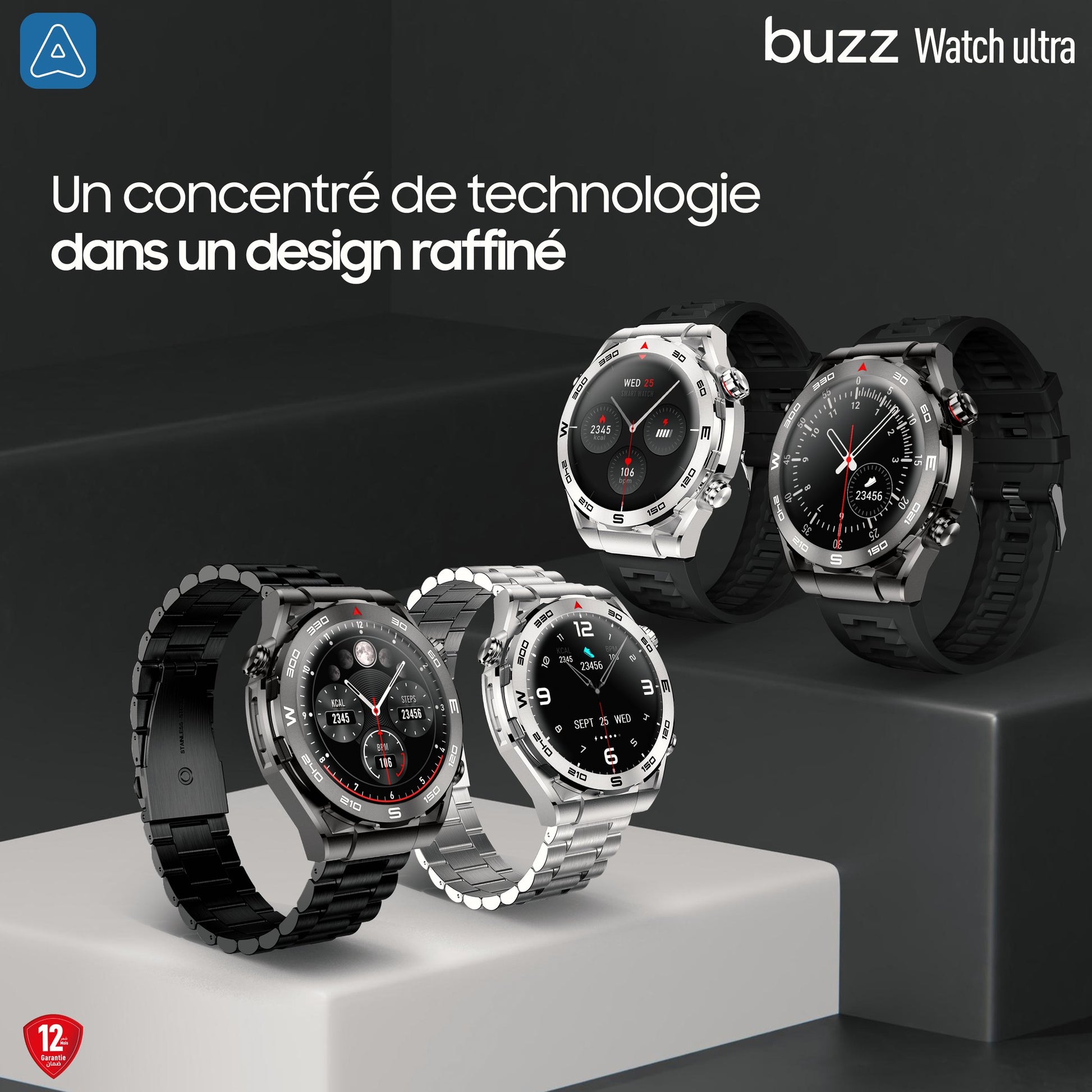 Buzz Watch Ultra هي ساعة ذكية تجمع بين التصميم العصري والمواصفات المتقدمة لتناسب كل الأذواق والاستخدامات اليومية.